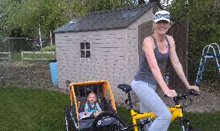 Mama and G took a bike ride this week. It was my first time pulling the baby bike trailer, and I was a little nervous. Gwenny loved getting all buckled up to ride, patting her windows as if to say, "Yeah, this is my sweet ride!"